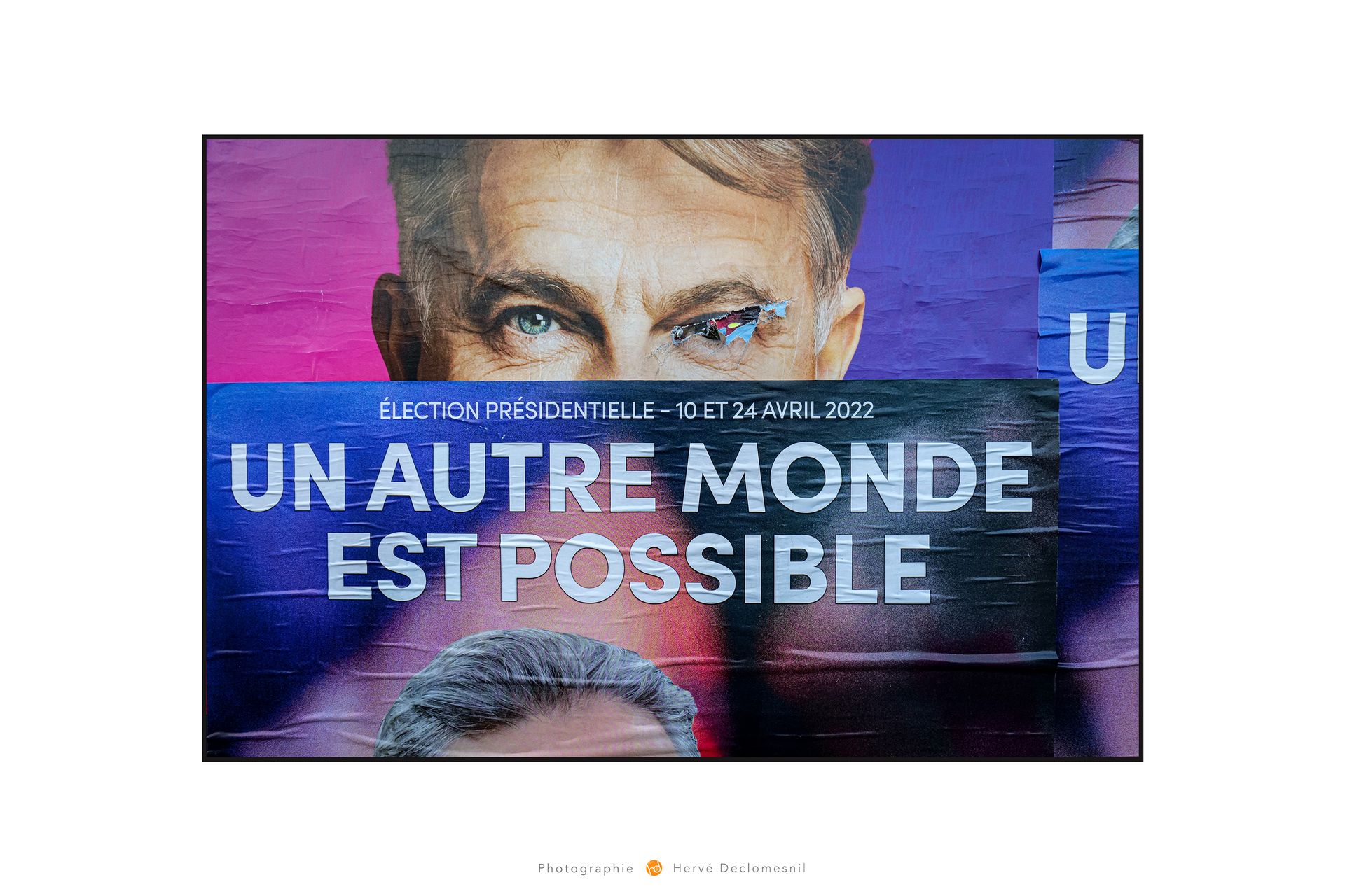 Ce travail photographique est la restitution du travail des colleurs et arracheurs d'affiches pour les différents candidats à l'élection présidentielle de 2022.